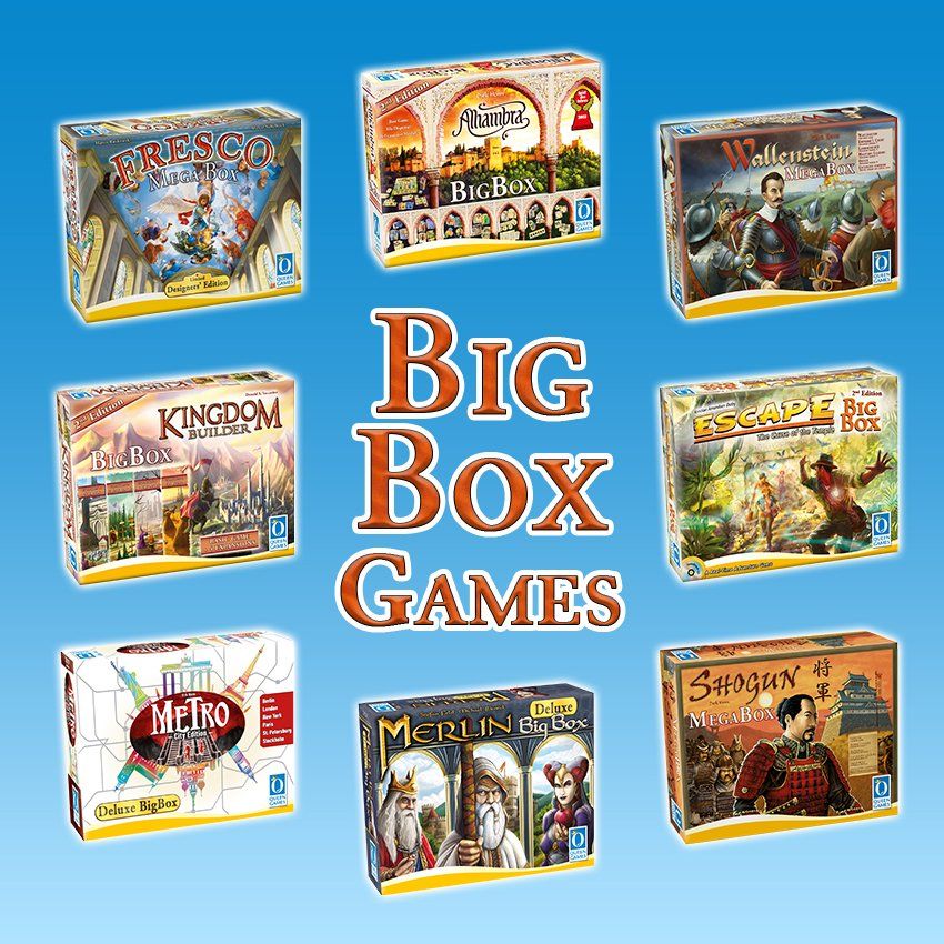Big Boxen bieten euch das Gesamtpaket: Das Grundspiel sowie in der Regel alle dazu erhältlichen Erweiterungen – alles in einer Box!